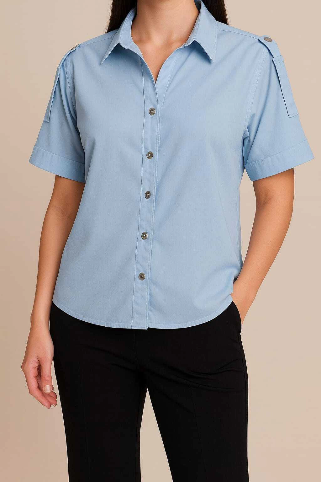 Te presentamos la Camisa Guili, confeccionada en suave tela de poplin que garantiza frescura y comodidad en cada uso. Su diseño de manga corta es ideal para los días cálidos, mientras que los botones plateados aportan un detalle elegante y moderno que realza cualquier outfit. Perfecta para un look casual con un toque sofisticado. ¡No te quedes sin la tuya y dale un nuevo aire a tu guardarropa!