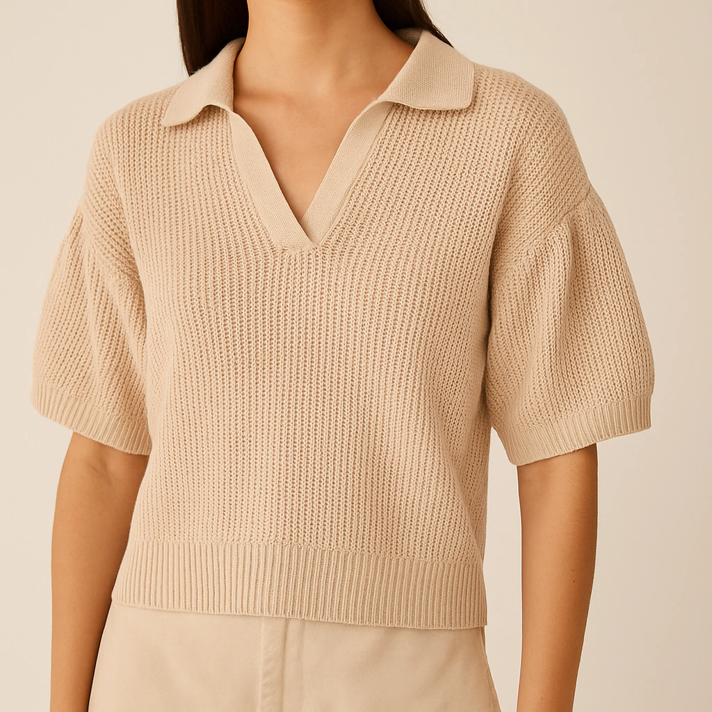 Te presentamos la CHOMBA ARI, una remera tipo chomba tejida en hilo calado que combina frescura y estilo. Su diseño de manga corta y tejido delicado la convierte en la opción ideal para disfrutar del calor con elegancia y comodidad. Perfecta para tus looks casuales o para un día relajado, la CHOMBA ARI es una prenda imprescindible que realza tu outfit con un toque sofisticado y moderno. ¡Sumala a tu guardarropa y luce única!