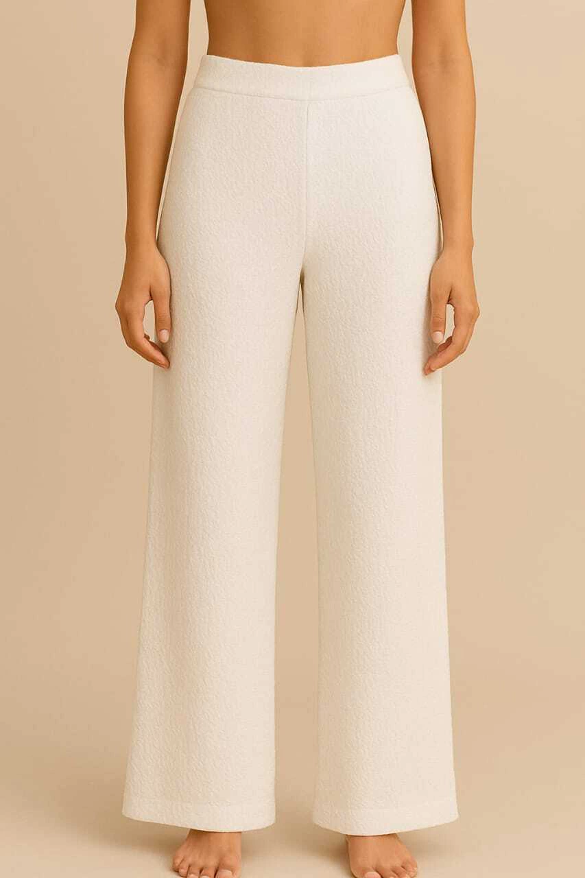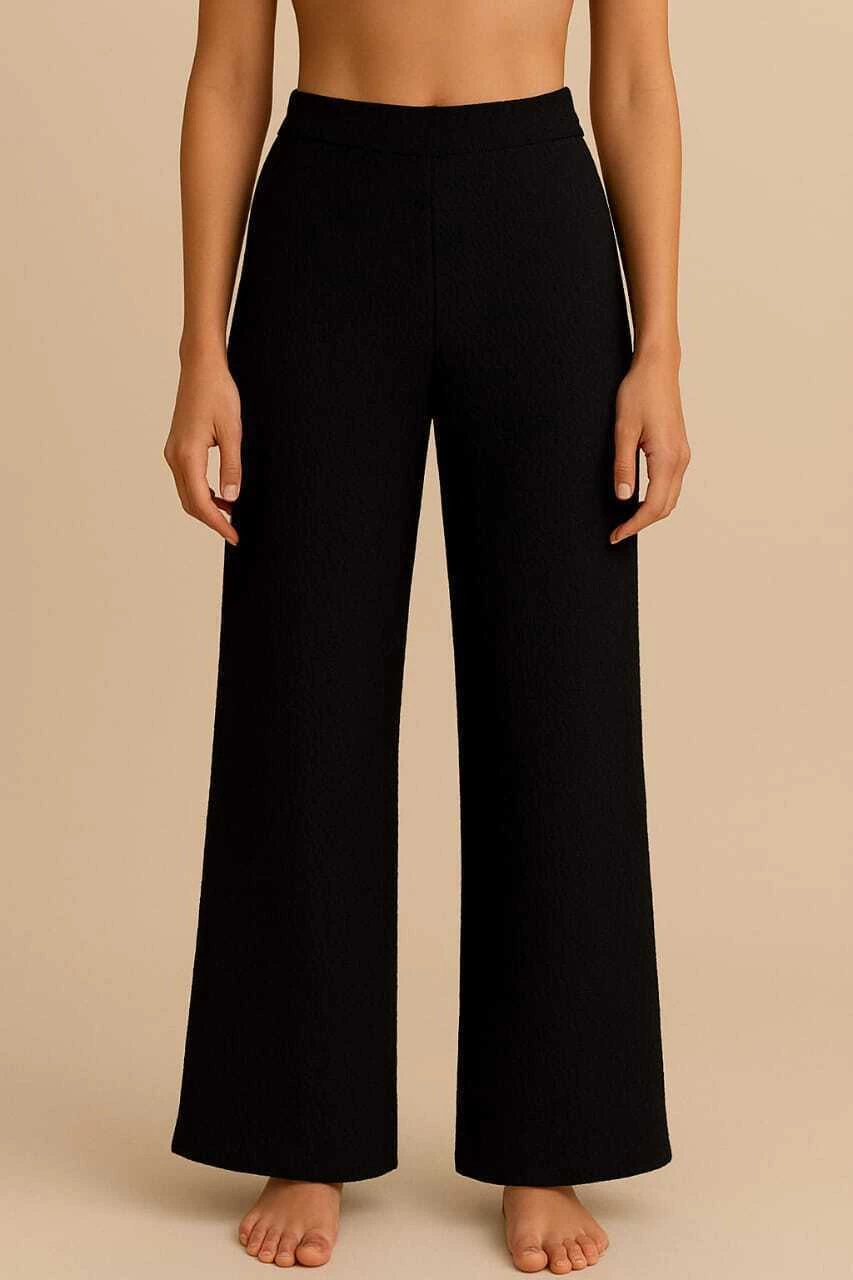 Confeccionado en tela de crepé suave y fluida, su diseño palazo recto realza tu figura con un estilo sofisticado. La cintura con elástico garantiza un ajuste cómodo y perfecto para cualquier ocasión.